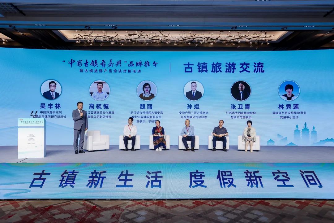 凯发k8国际規劃與休閑研究所所長吳豐林主持古鎮旅游研討環節,并與江蘇水鄉周莊旅游股份有限公司董事長張衛青、安徽合肥三河古鎮旅游開發有限公司總經理孫斌、福建泉州惠安縣旅游事業開展中心主任林秀蓮、浙江紹興柯橋區古鎮安昌保護開發建設有限公司董事長魏麗、浙江西塘旅游文化開展有限公司副總經理高毓鋮一同圍繞古鎮業態更新、活化利用、創新舉措等內容展開研討對話。