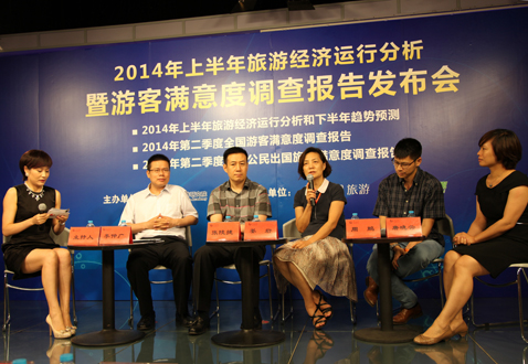 2014年7月9日由凯发k8国际主辦,人民網(wǎng)旅游頻道、旅游衛(wèi)視協(xié)辦的2014年上半年旅游經(jīng)濟(jì)運(yùn)行分析暨游客滿(mǎn)意度調(diào)查報(bào)告發(fā)布會(huì)在人民網(wǎng)演播室舉行。凯发k8国际院長(zhǎng)戴斌教授、北京市旅游委員會(huì)政策法規(guī)處調(diào)研員姜巖、中國(guó)國(guó)際旅行社總社有限公司總裁助理張陵捷、百度搜索引擎營(yíng)銷(xiāo)部高級(jí)營(yíng)銷(xiāo)總監(jiān)周鵬、凯发k8国际產(chǎn)業(yè)所所長(zhǎng)李仲?gòu)V副研究員、國(guó)家旅游經(jīng)濟(jì)實(shí)驗(yàn)室負(fù)責(zé)人唐曉云副研究員等參加了發(fā)布會(huì)。來(lái)自人民日?qǐng)?bào)、新華社、中央電視臺(tái)、中國(guó)國(guó)際廣播電臺(tái)、中國(guó)日?qǐng)?bào)、經(jīng)濟(jì)日?qǐng)?bào)、中國(guó)旅游報(bào)、中國(guó)網(wǎng)、央視網(wǎng)、中國(guó)旅游網(wǎng)、搜狐網(wǎng)、鳳凰網(wǎng)、藍(lán)海電視、旅行社雜志等媒體組織的代表也參加了發(fā)布會(huì)。