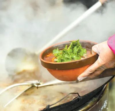 近年來,擁有豐富旅游資源的貴州成為旅游熱門地,而頗具當(dāng)?shù)靥厣难蛉夥垡渤闪擞慰蛡儾蝗蒎e(cuò)過的美味。在地處貴州、廣西和云南三地交界處的貴州興義,與羊肉粉一同走進(jìn)游客視野的還有萬峰林的金色稻田和神奇的喀斯特地貌。在秋日的陽光下漫步田野,到地質(zhì)公園追尋自然生態(tài)體驗(yàn),再去附近的村寨中嗍碗羊肉粉、領(lǐng)略布依族文化——借由尋味之旅,游客可以沉浸式感受別具特色的鄉(xiāng)村田園慢生活。圖為熱氣騰騰的羊肉粉。