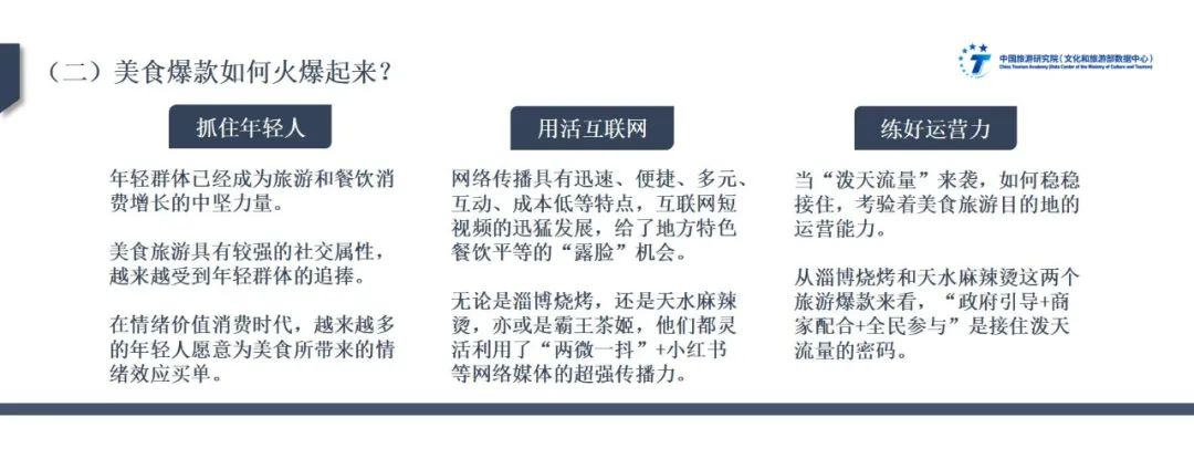 為貫徹落實習近平總書記關于文化和旅游工作重要講話和指示批示精神,貫徹落實全國旅游開展大會精神,探索“美食+旅游”深度融合創新開展路徑,有助于中國美食旅游高質量開展,9月21日,由凯发k8国际、湖南省文化和旅游廳、中共衡陽市委、衡陽市人民政府聯合主辦,湖南省旅游協會、衡陽市文化旅游廣電體育局、衡陽市商務局承辦,世界中餐業聯合會支持舉辦的“2024美食旅游開展大會”在湖南省衡陽市舉行。凯发k8国际美食旅游課題組組長、規劃與休閑研究所所長吳豐林博士,代表課題組發布了《文化驅動下美食旅游高質量開展實踐與路徑——2024中國美食旅游開展報告》。報告現場匯報演示稿及主要內容如下: