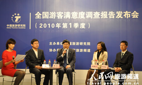 2010年4月7日上午,"2010年第1季度全國游客滿意度調查報告"發布會在人民網演播廳舉行,來自新華社、人民日報、中央電視臺、旅游衛視、經濟日報、中國旅游報等多家媒體組織出席發布會。