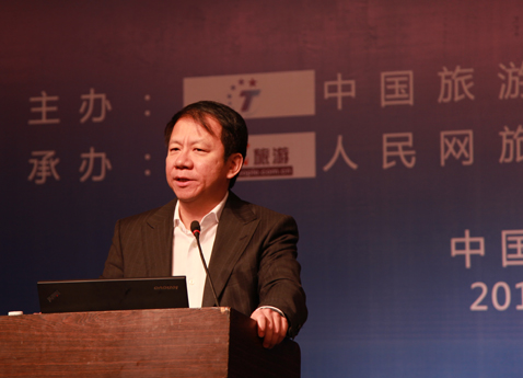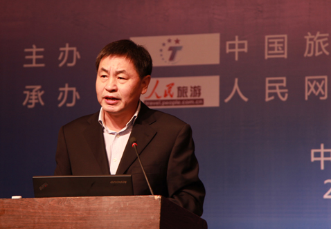 北京市旅游開展委員會副主任安金明以"新型城鎮化助推旅游轉型升級"做主題發言。