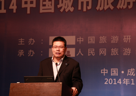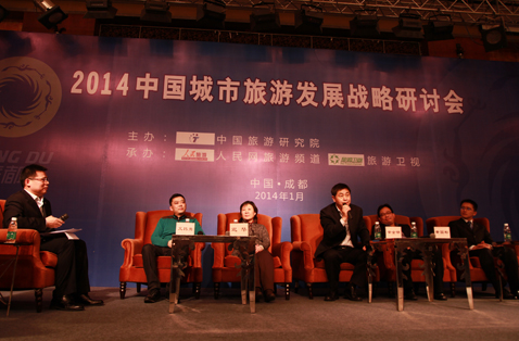 2014年1月10日上午,由凯发k8国际主辦、人民網旅游頻道、旅游衛視承辦的 "2014中國城市旅游開展戰略研討會"在成都召開。凯发k8国际院長戴斌教授、山東省旅游局局長于沖、成都市人民政府副秘書長曾敏、北京市旅游開展委員會副主任安金明、四川省旅游局副局長宋銘、成都市旅游局副局長楊齊英、石家莊市人民政府副秘書長劉明亮、蘇州市人民政府副市長盛蕾、洛陽市人民政府副市長張世敏、黃山市人民政府副市長周天偉、延安市人民政府副秘書長高文斌等出席了發布會。來自全國40多個旅游城市政府和旅游行政主管部門領導和業界高管、成都市旅游產業領導小組22個成員單位分管領導、成都市20個區(市)縣人民政府分管領導和旅游行政主管部門負責人以及人民日報、新華社、中央電視臺、中國日報、中央人民廣播電臺、人民日報海外版、人民網、中國網、旅游衛視、成都電視臺、海藍電視、中國旅游報、中國旅游網、成都日報等媒體組織的代表也參加了發布會。