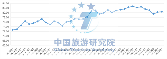 全國游客滿意度穩定在“滿意”區間且實現環比增長。2023年一季度全國游客綜合滿意度指數80.41,季度環比增長0.29%,低于2022年一季度同期水平(81.52)。2022年,疫情防控形勢下全國游客滿意度出現2016年以來的首次下降,進入2023年,全國旅游市場回歸安全、有序軌道,居民出游意愿和消費信心逐步恢復,游客取得感和幸福感增加,游客滿意度整體呈現企穩回升態勢。