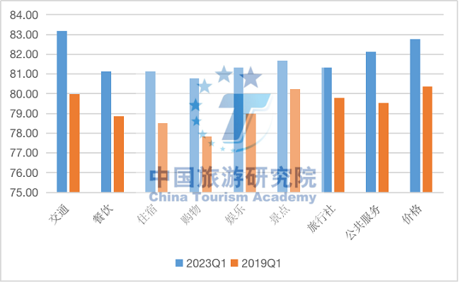 圖3:2019、2023年一季度出境游客滿意度細分指標對比