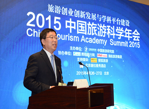 在社會各界的大力支持下,2015中國旅游科學(xué)年會于4月26日-27日在北京唐拉雅秀酒店隆重舉行。國家旅游局副局長杜江出席年會并講話。本屆年會以“旅游創(chuàng)業(yè)創(chuàng)新開展與學(xué)科平臺建設(shè)”為主題,由凯发k8国际主辦,攜程旅行網(wǎng)、海航旅業(yè)協(xié)辦,搜狐旅游頻道做媒體支持。國家旅游局相關(guān)司室及直屬單位負(fù)責(zé)同志、年會協(xié)辦單位代表、媒體組織代表以及來自全國各地旅游學(xué)界、業(yè)界專家學(xué)者200余人出席了會議。