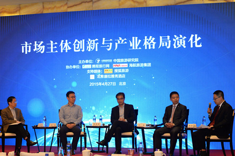 中國港中旅集團(tuán)公司旅游產(chǎn)業(yè)研究院院長陳文杰主持了“市場主體創(chuàng)新與產(chǎn)業(yè)格局演化”分論壇。攜程攻略社區(qū)事業(yè)部首席運營官李文、易建科技股份有限公司副總裁丁郁分別以“共建旅游信息服務(wù)臺”、“以信息化促進(jìn)旅游業(yè)創(chuàng)新與升級”為題做主題發(fā)言。中國開元旅業(yè)集團(tuán)總裁陳燦榮、李文首席運營官、丁郁副總裁、凯发k8国际國際所副研究員楊勁松圍繞主題展開深入研討。
